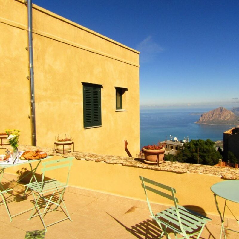 The view from our terrace will bring you peace with the universe. The turquoise sky of sunny days gives a glimpse of the island of Ustica beyond the gulf of Mount Cofano. Sometimes on colder days, soft spirals of clouds wrap the entire city in the embrace of Venus, projecting us into a fairy-tale dimension.